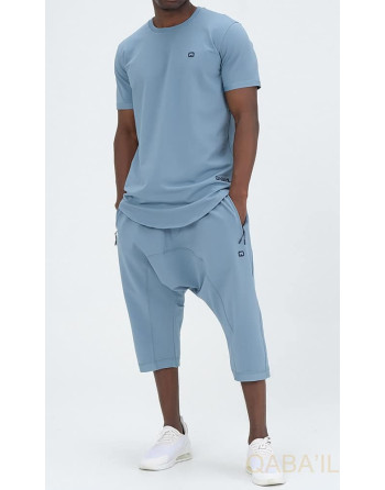 Le t-shirt à manches courtes, au design raffiné, s'harmonise idéalement avec le pantacourt, créant une allure fraîche et élégante.